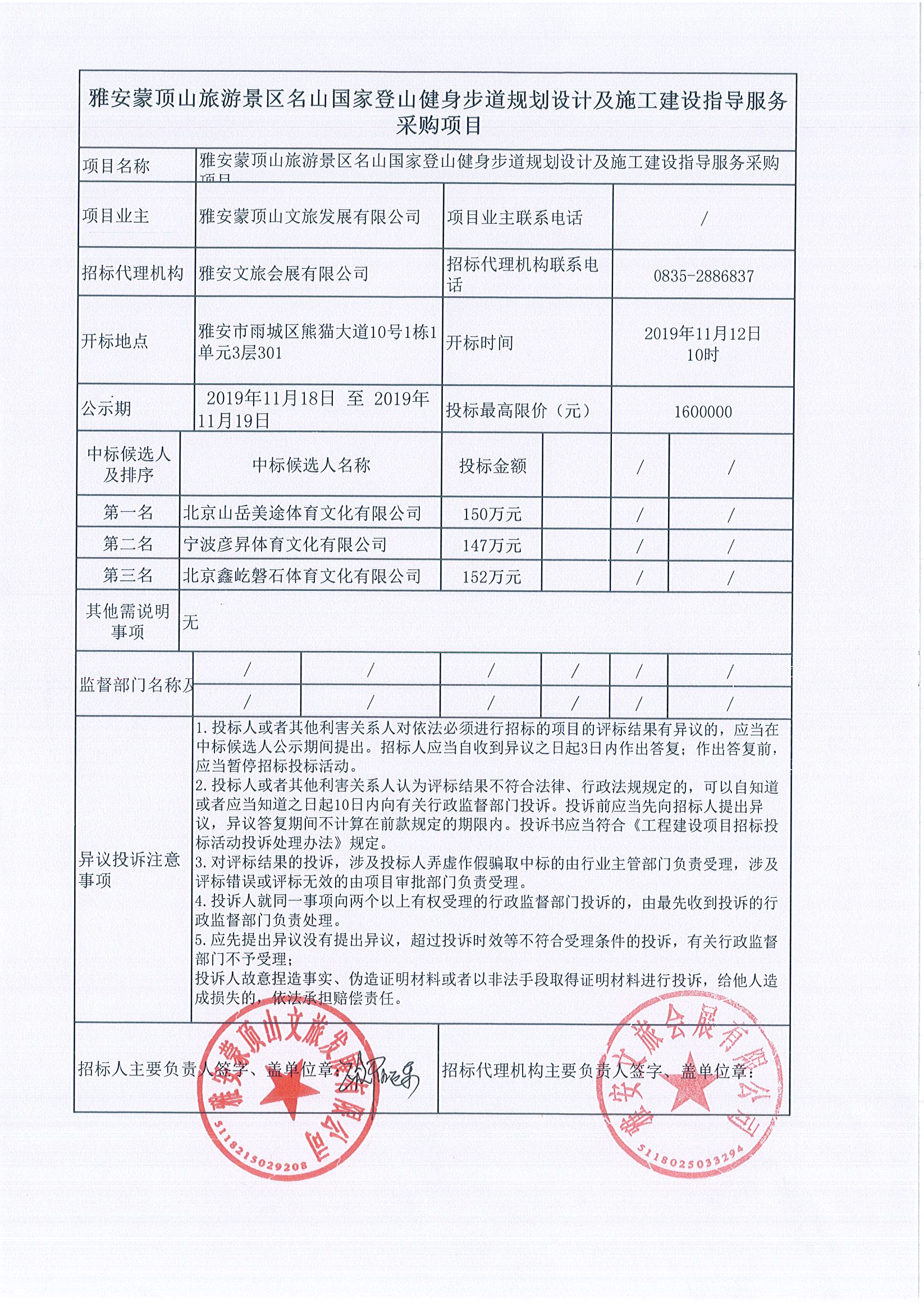 雅安蒙頂山旅游景區(qū)名山國家登山健身步道規(guī)劃設(shè)計及施工建設(shè)指導(dǎo)服務(wù)采購項目結(jié)果公示