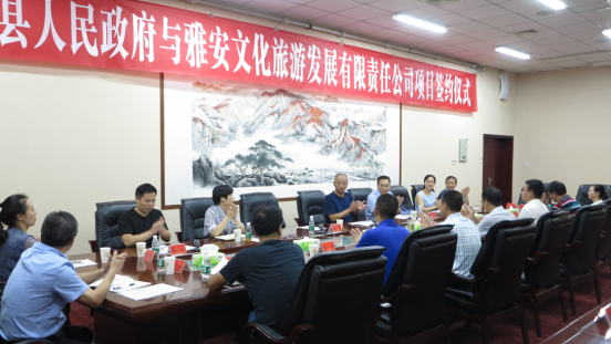 簽約儀式由漢源縣政府副縣長林卓主持。市人大常委會副主任、漢源縣委書記楊興品,漢源縣委副書記、縣長鄭朝彬,市旅發(fā)委副主任孟水明,雅安文旅公司董事長張雅斌分別致辭。漢源縣招商局、旅游局、住建局、國土局等部門負(fù)責(zé)人,雅安文旅公司總經(jīng)理唐亮、黨支部書記、副董事長殷麗華及全體班子成員參加簽約儀式。