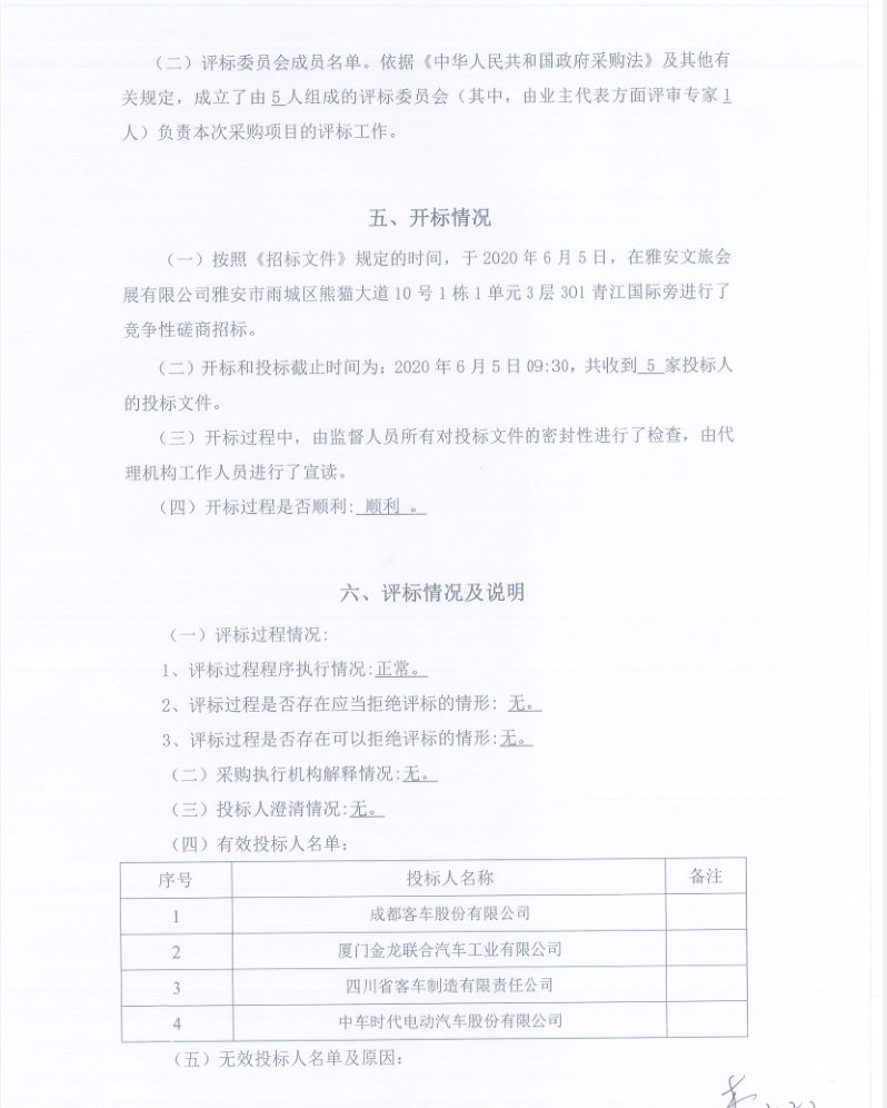 蘆山縣姜城旅游公交有限公司純電動(dòng)公交車采購項(xiàng)目成交公告