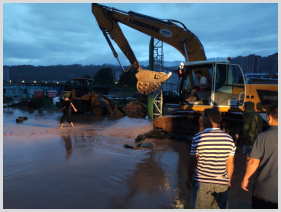 汛情就是命令,險情即是戰(zhàn)場。暴雨面前,項目現(xiàn)場雅安文旅人勇當(dāng)抗洪一線的逆行者,靠前作戰(zhàn),第一時間組織人員全面排查,投入搶險,全力開展搶險救災(zāi)工作。一次次冒雨前行,一夜夜通宵搶修,無畏暴風(fēng)驟雨,現(xiàn)場3臺挖掘機轟隆聲不斷,60余名搶險人員在應(yīng)急小組領(lǐng)導(dǎo)下緊張而有序的開挖泄洪通道,同時第一時間與下游大唐電站相關(guān)負(fù)責(zé)人取得聯(lián)系,請求啟用片區(qū)3臺泄洪泵。隨著泄洪通道的開挖以及3臺泄洪泵的啟用,現(xiàn)場積水迅速排出,險情得到有效控制。