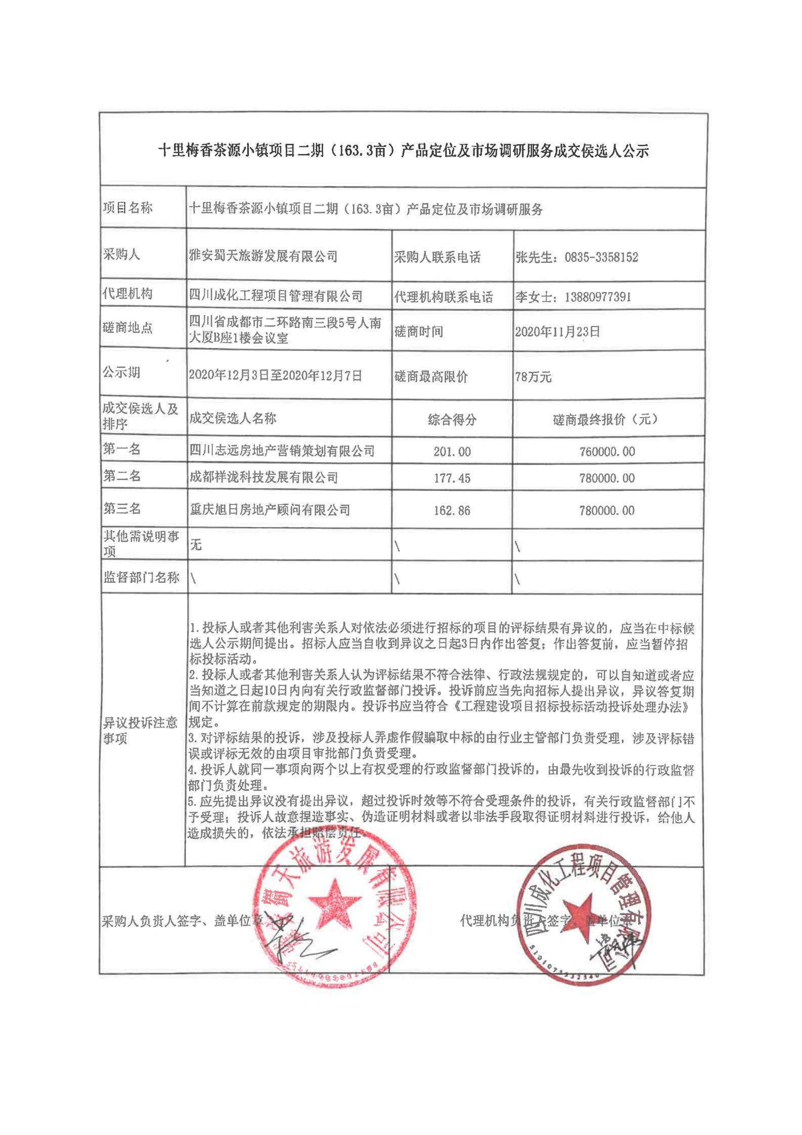 十里梅香茶源小鎮(zhèn)項(xiàng)目二期(163.3畝)產(chǎn)品定位及市場調(diào)研服務(wù)成交侯選人公示