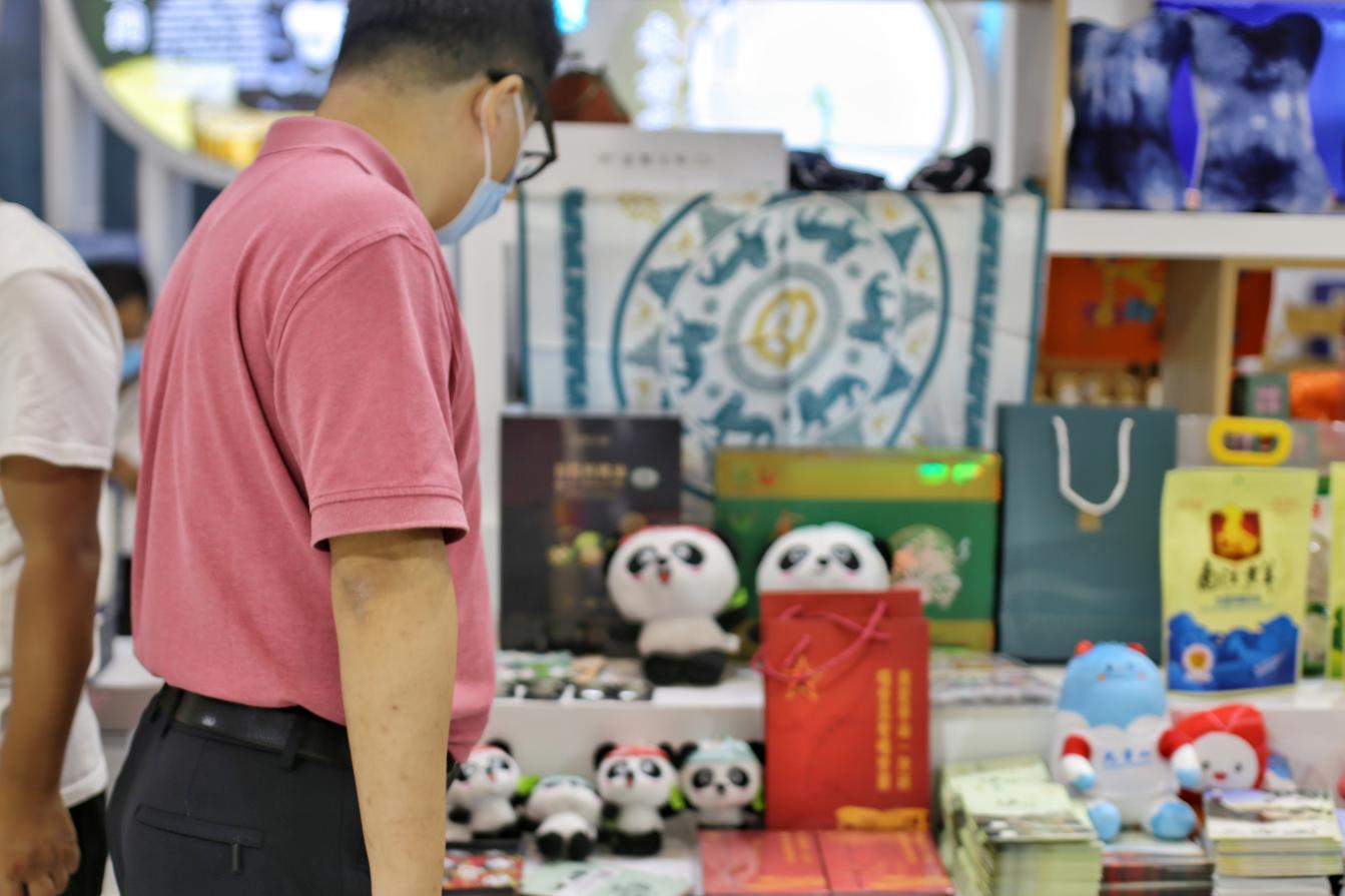 在“成渝地區(qū)雙城經(jīng)濟圈建設(shè)文化展區(qū)”,雅安有禮.磚紅和雅雅安安系列公仔等文創(chuàng)產(chǎn)品以實物方式展出,蒙頂山旅游景區(qū)、雅安熊貓會展博覽館兩項文產(chǎn)項目以“視頻+海報”的形式展示。