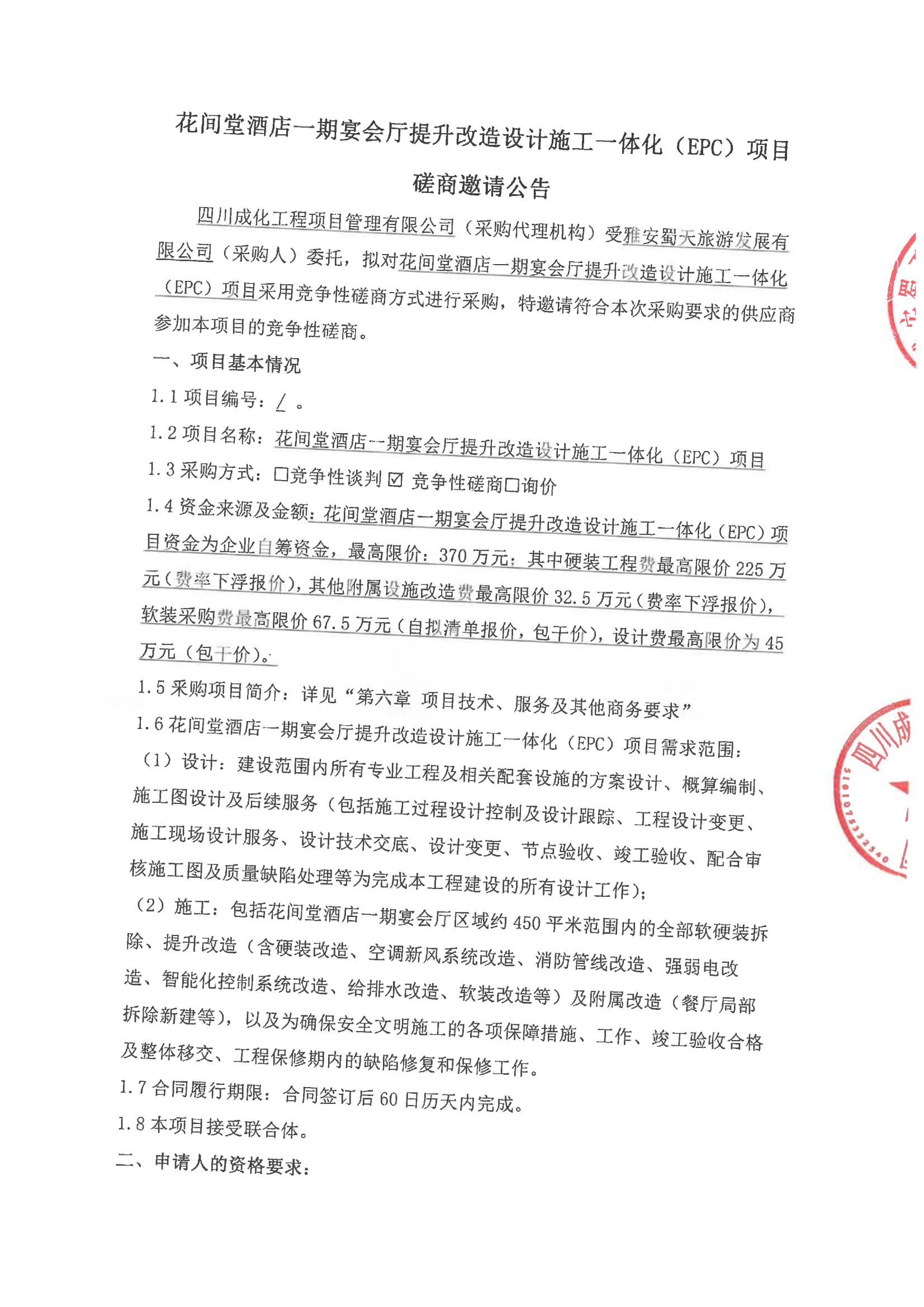 花間堂酒店一期宴會(huì)廳提升改造設(shè)計(jì)施工一體化(EPC)項(xiàng)目磋商邀請(qǐng)公告(1)