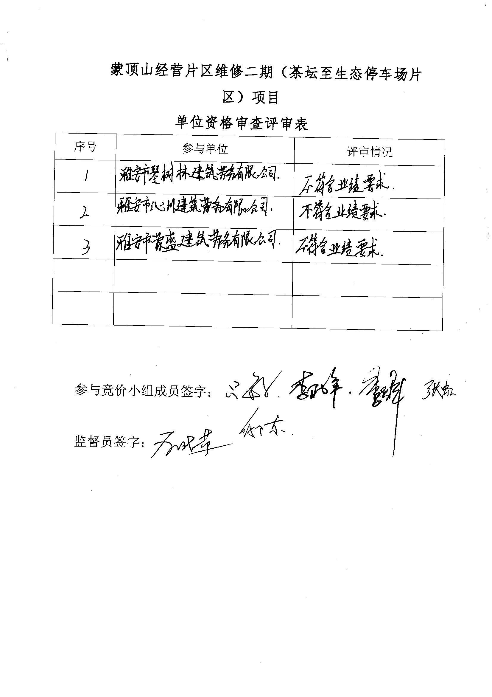 流標(biāo)蒙頂山經(jīng)營(yíng)片區(qū)維修二期(茶壇至生態(tài)停車(chē)場(chǎng)片區(qū))項(xiàng)目流標(biāo)公告