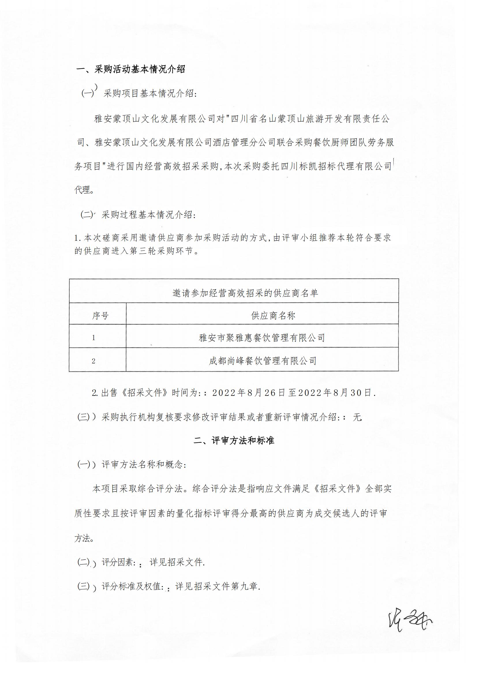 雅安蒙頂山文化發(fā)展有限公司酒店管理分公司聯(lián)合采購餐飲廚師團(tuán)隊(duì)勞務(wù)服務(wù)項(xiàng)目評審報(bào)告